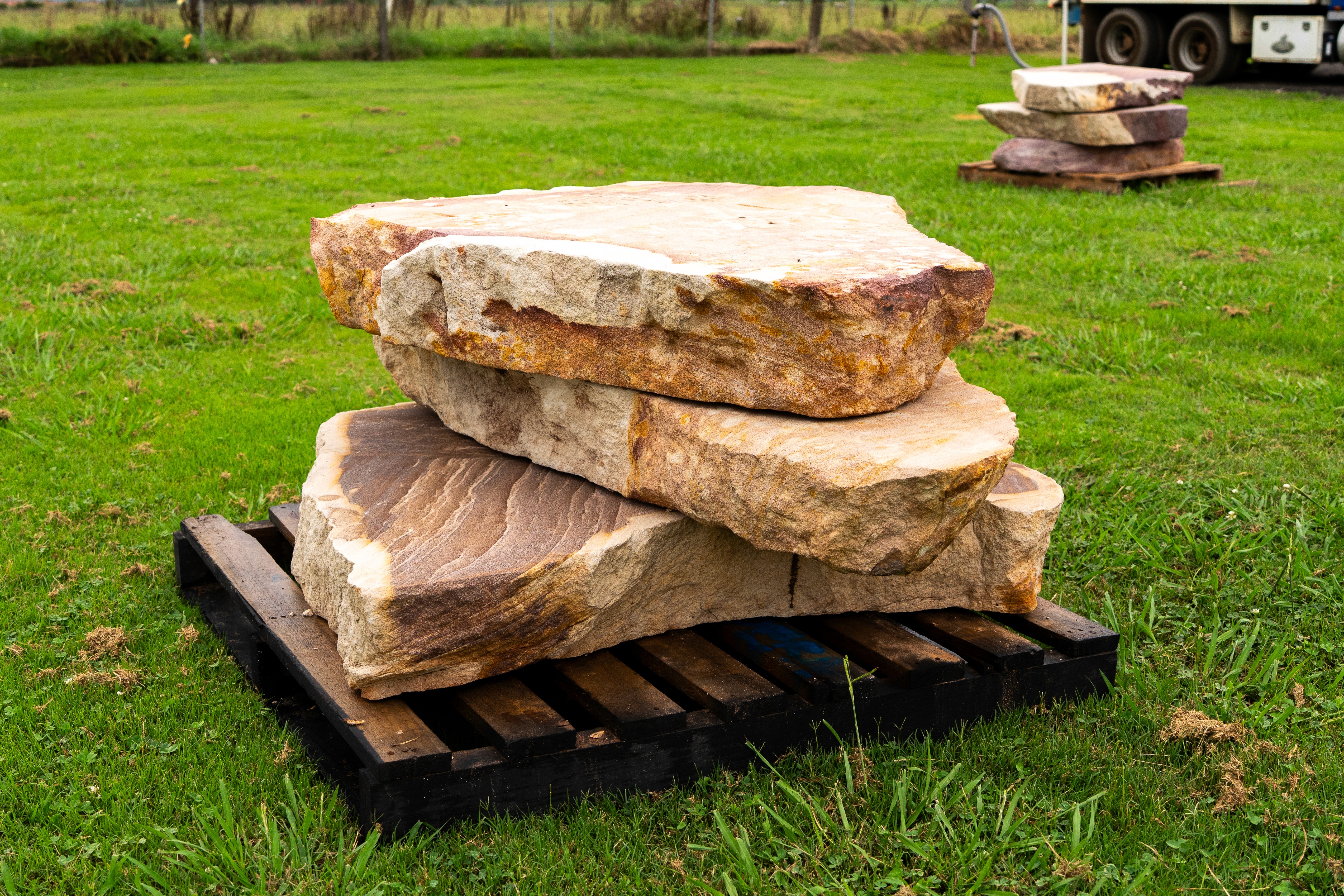 Our Circular Sandstone Steppers offer the same natural character with a clean, practical finish. Each piece comes in approximately 500, 700 or 1000mm diameters, featuring flat sawn top and bottom surfaces with natural rockface edges. Ideal for garden pathways or feature stepping stones, they bring a simple natural element to any landscape.