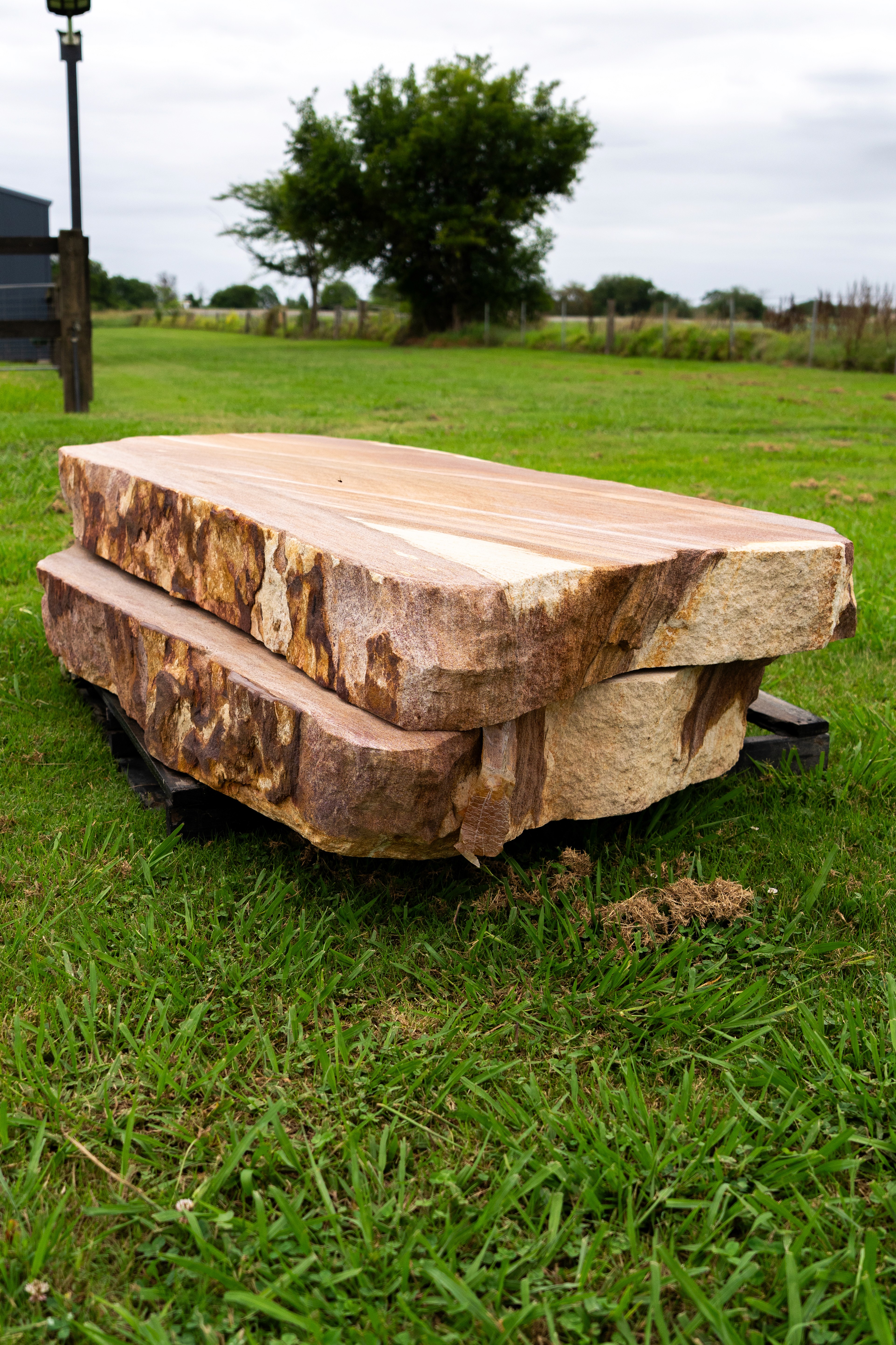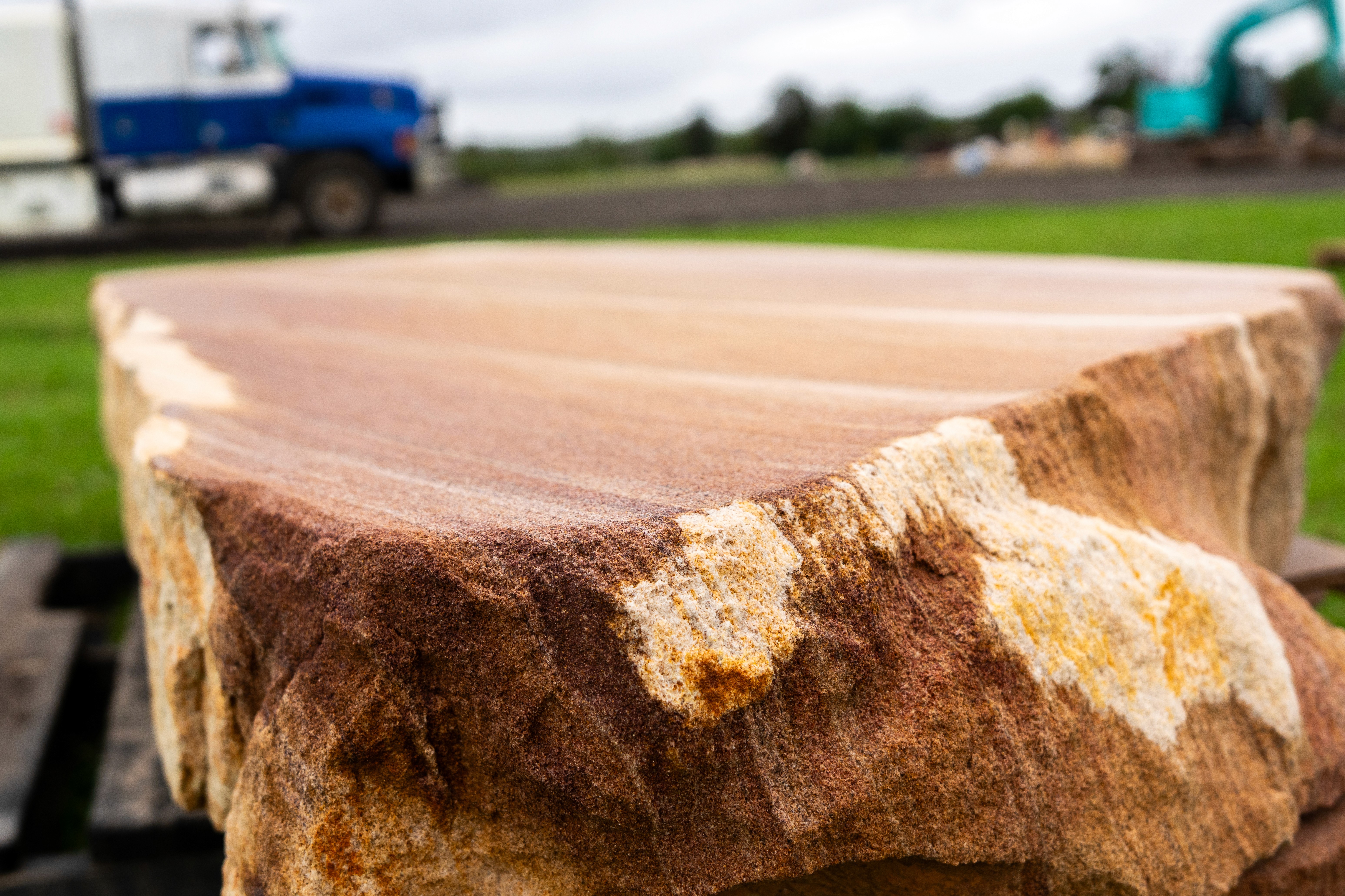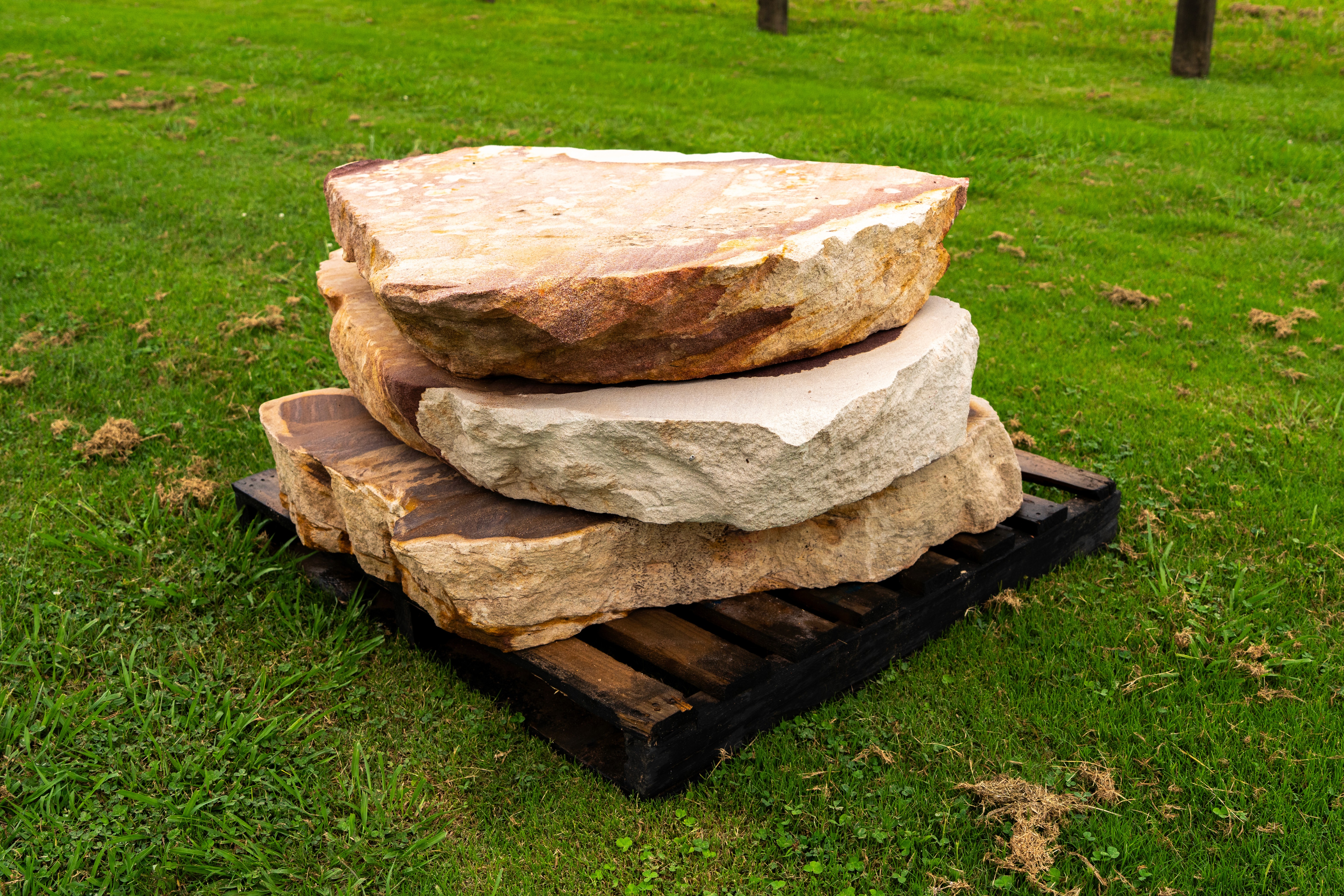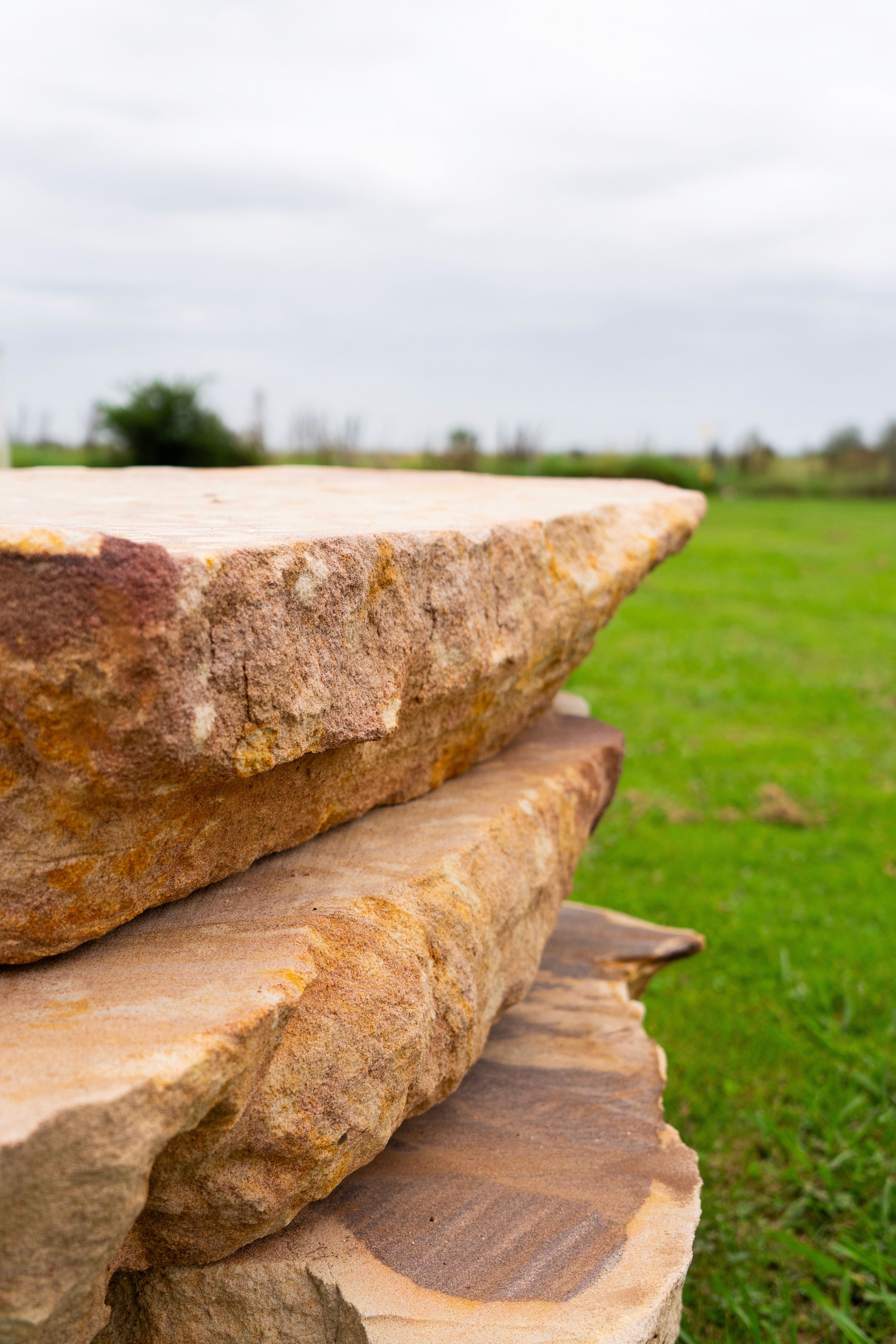 Due to their size and weight, our natural sandstone steppers are delivered palletised, with two or three pieces per pallet depending on the size of the individual stones. This ensures safe handling and minimises the risk of damage in transit. A tailgate or crane truck may be required depending on your site access, and we recommend having appropriate machinery or assistance on hand to move pieces into their final position once delivered. For customers who wish to hand-select their pieces, yard viewing and pick-up is available and encouraged, as the individual character of each stepper varies. Our team can advise on quantities, spacing, and laying methods to help you achieve the best possible result. Contact us today to discuss current stock availability, sizing options, and delivery logistics in your area.